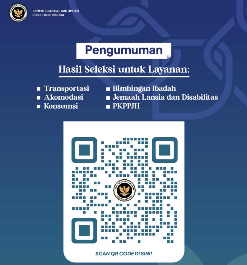 Peserta yang dinyatakan lulus adalah peringkat 1 (satu) sampai dengan 40 (empat puluh), dan berhak mengikuti tahapan pelatihan Petugas Penyelenggara Ibadah Haji (PPIH) Arab Saudi Tahun 1447 H 2026 M, sebagaimana tercantum dalam daftar berikut (pindai QR code).